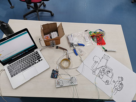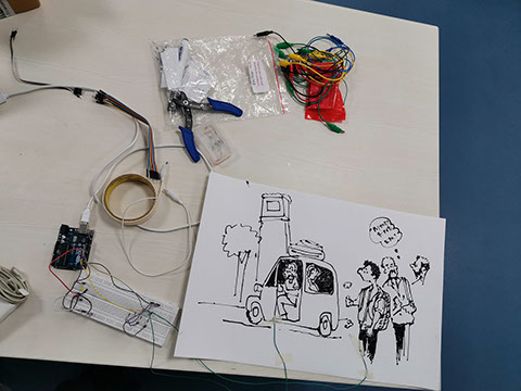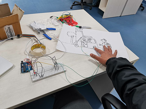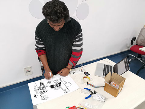 Exploring conductive ink to make interactive paintings and artwork. Here, Prasun - an artist and educator at School of Design, UPES, quickly sketches out an urban scenario. It was made interactive using Arduino. Status: Work-in-progress.